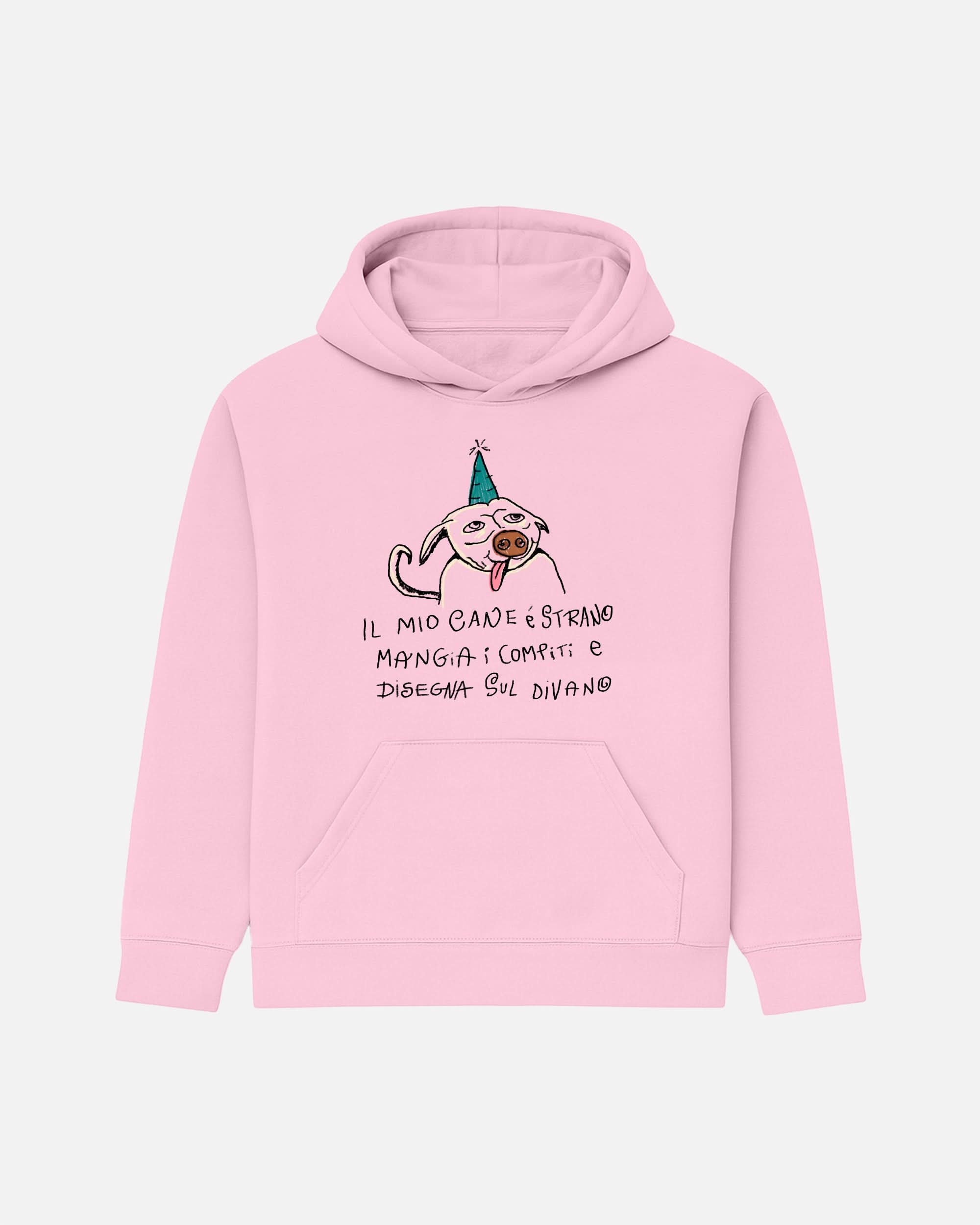 Sul fronte, la stampa DTF (Direct to Film) ad alta definizione porta il messaggio ironico e audace: "Il mio cane è strano...".