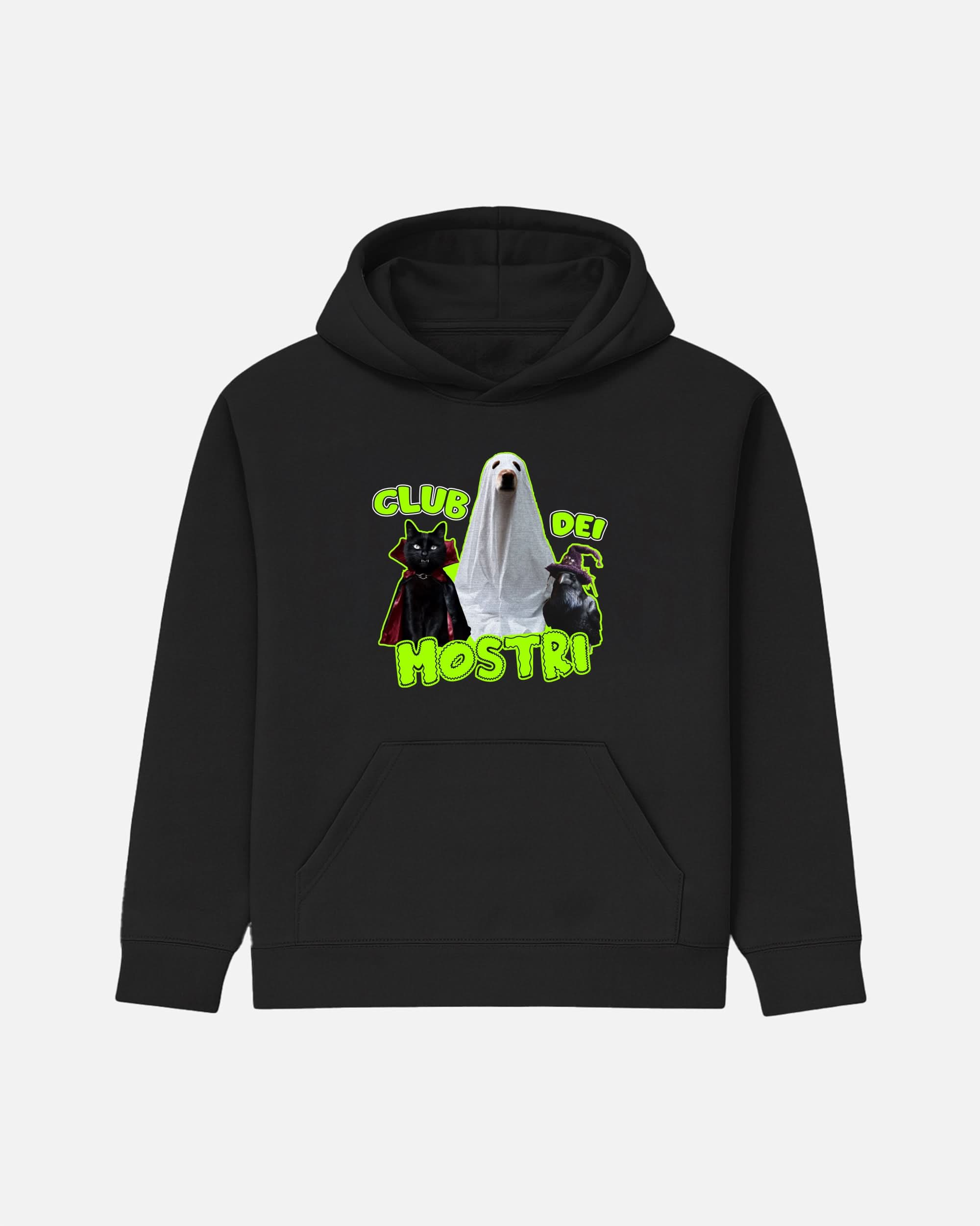 Sul fronte, la stampa DTF (Direct to Film) ad alta definizione porta il messaggio ironico e audace: "Club dei mostri".