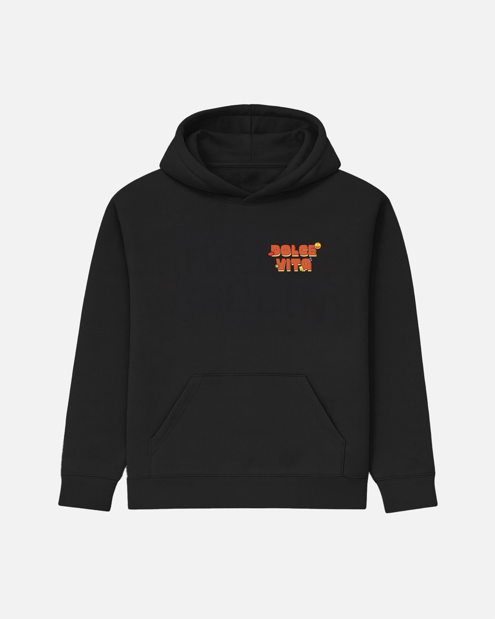 Sul fronte, la stampa DTF (Direct to Film) ad alta definizione porta il messaggio ironico e audace: "Dolce vita".