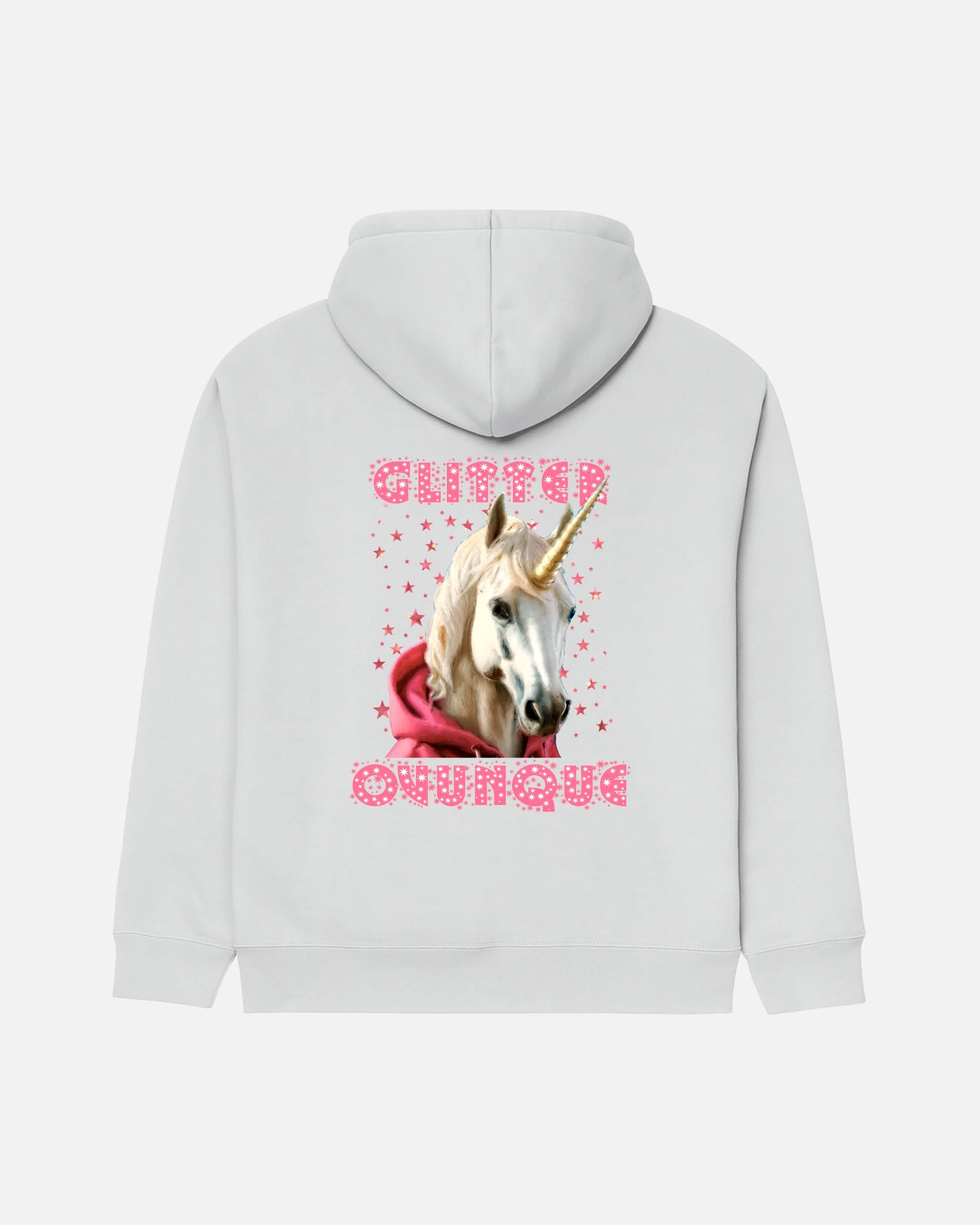 Sul fronte, la stampa DTF (Direct to Film) ad alta definizione porta il messaggio ironico e audace: "Glitter ovunque".