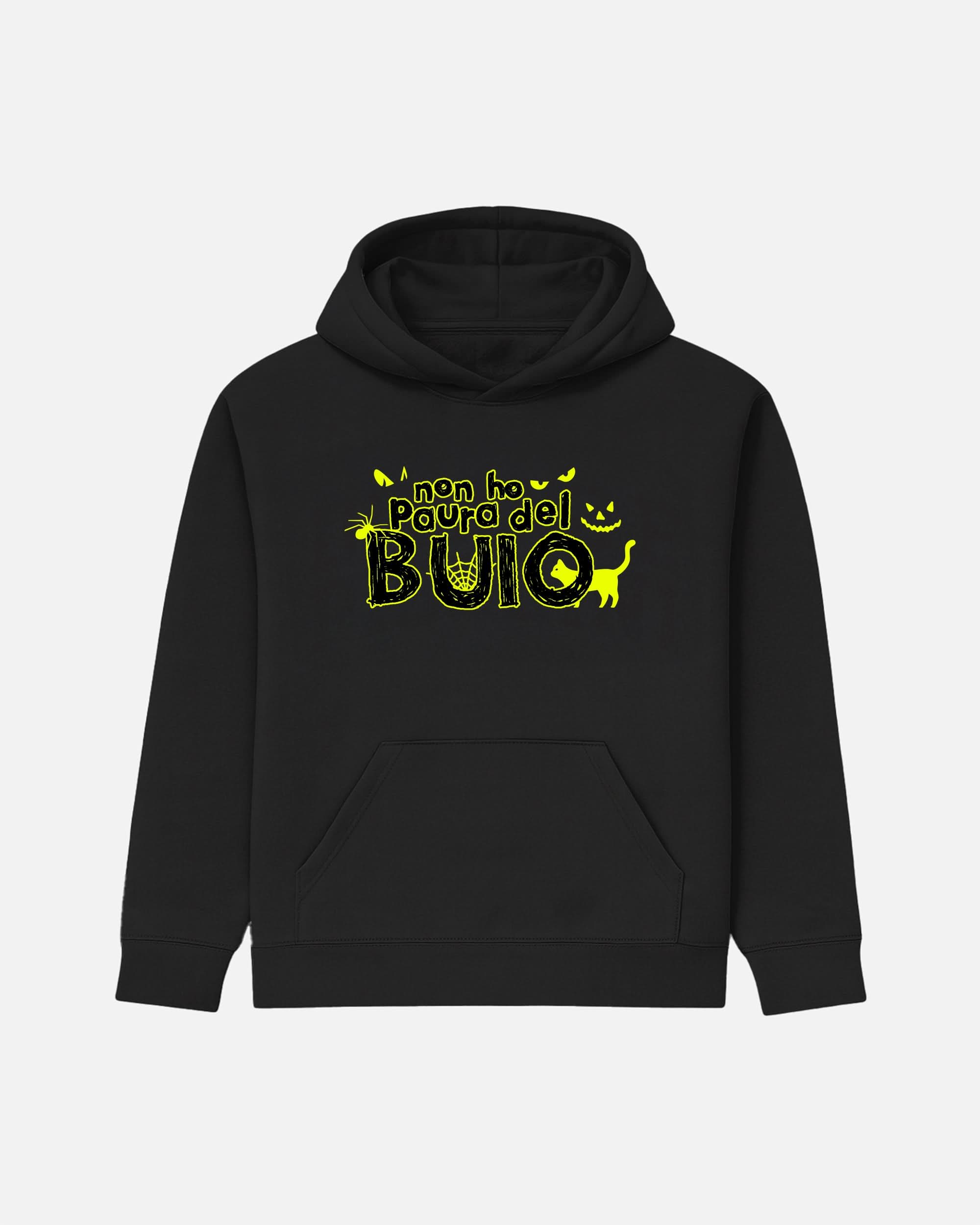 Sul fronte, la stampa DTF (Direct to Film) ad alta definizione porta il messaggio ironico: "Non ho paura del buio".